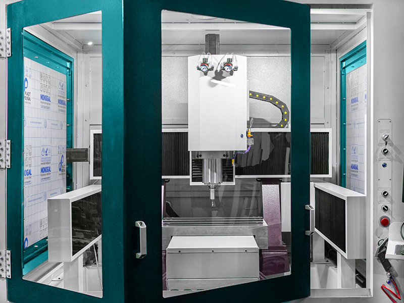 - Закрытый защитный кабинет выполнен из прочного стального профиля и предназначен для безопасной работы с применением СОЖ или масляного тумана;
