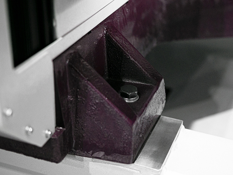 - Основа станка — цельнолитая чугунная станина с высокой массой, устойчивостью к деформациям и отличными виброгасительными свойствами.