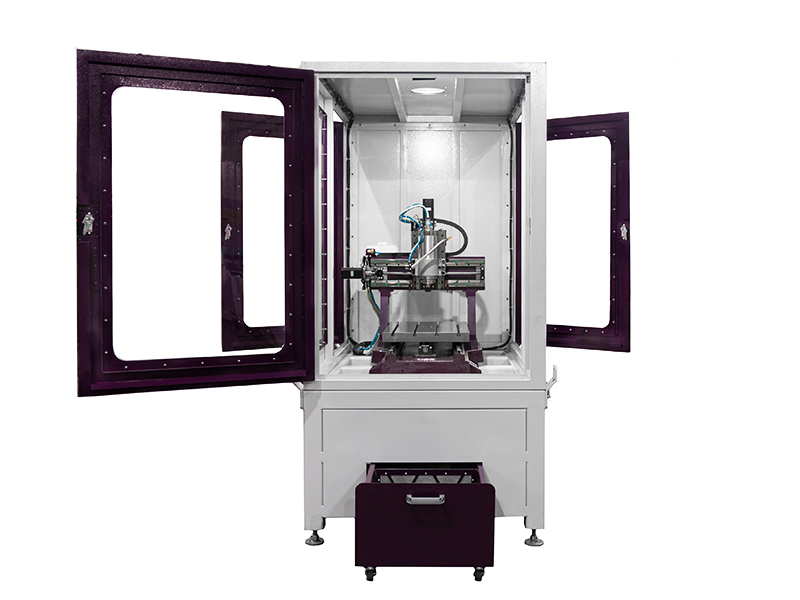 Станок оснащён закрытым кожухом, который не только повышает безопасность, но и удерживает стружку, пыль и шум внутри рабочей зоны. Это делает эксплуатацию более комфортной и снижает уровень загрязнения помещения.