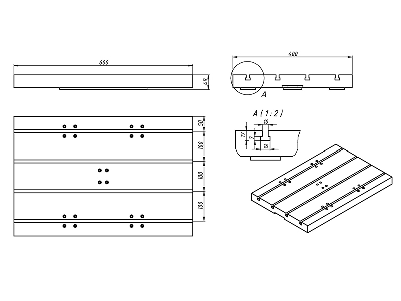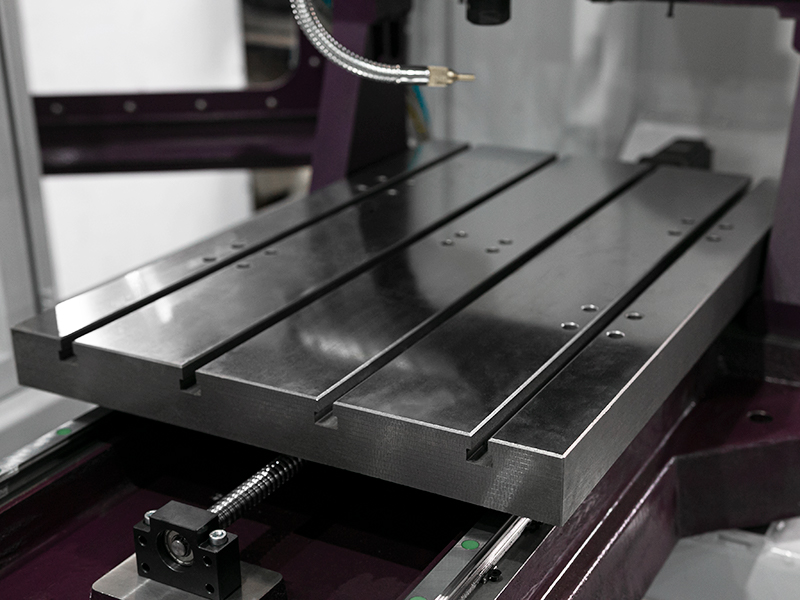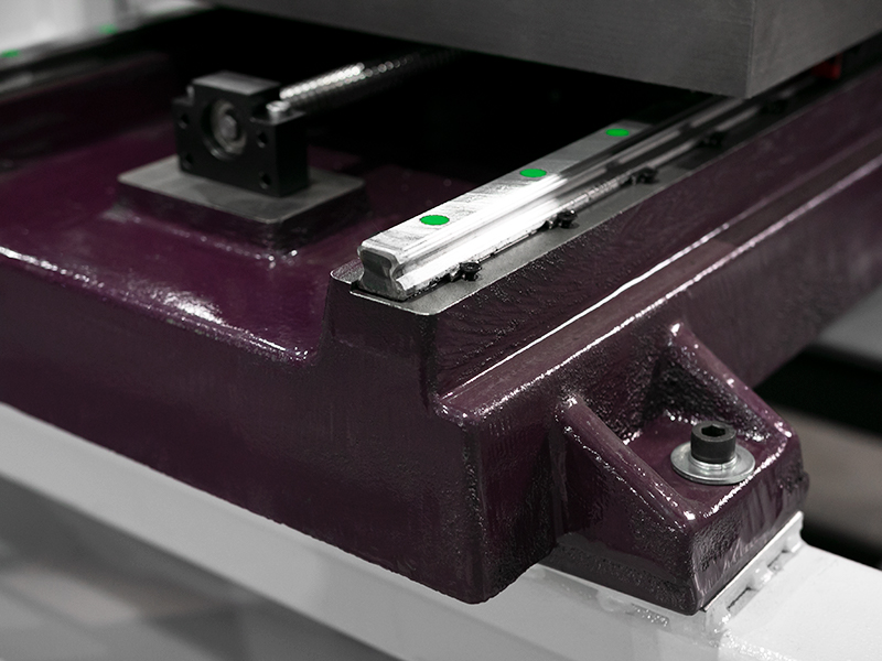 Основа станка — чугунные несущие элементы весом до 150 кг. По сравнению со сталью, чугун имеет лучшую виброустойчивость и жесткость, что особенно важно при обработке твердых материалов на высоких скоростях.