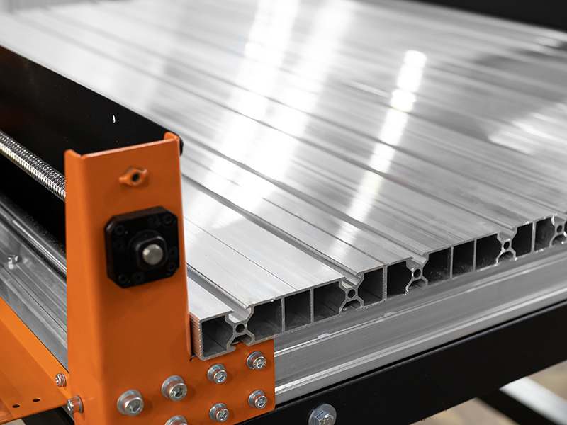 В стандартной поставке станка вы получаете всё необходимое для начала работы: шпиндель воздушного охлаждения мощностью 1,5 кВт с частотным преобразователем, набор цанг, датчик автоматического определения высоты инструмента, автономный блок управления и комплект ЗИП. Рабочий стол может быть выполнен из алюминиевого Т-образного профиля, что дополнительно повышает жёсткость всей конструкции и значительно упрощает фиксацию заготовок.