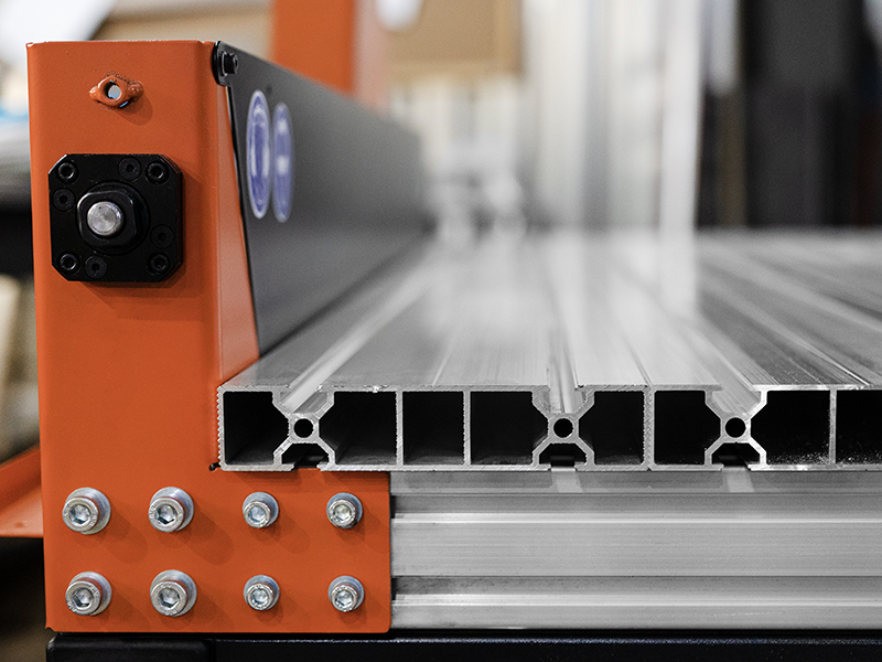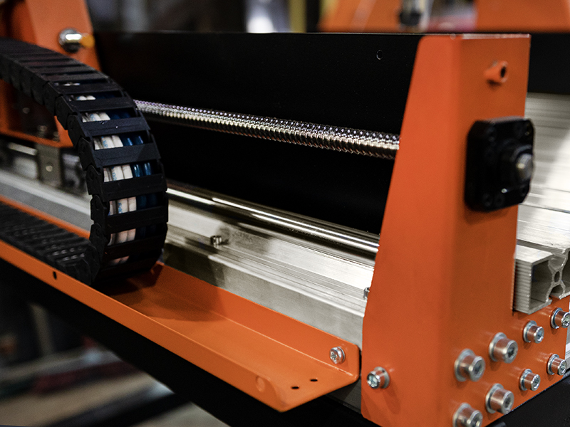 Станок собран на основе прочной сварной рамы и алюминиевого профиля, что обеспечивает устойчивость конструкции, минимальную вибрацию и высокую точность обработки. Такое решение позволяет достичь отличного баланса между весом, жёсткостью и устойчивостью. Система передачи по всем осям основана на шарико-винтовых парах (ШВП) холодной накатки класса точности C7 — это надёжная механика с КПД до 98%, которая работает точно и плавно даже при длительных нагрузках.