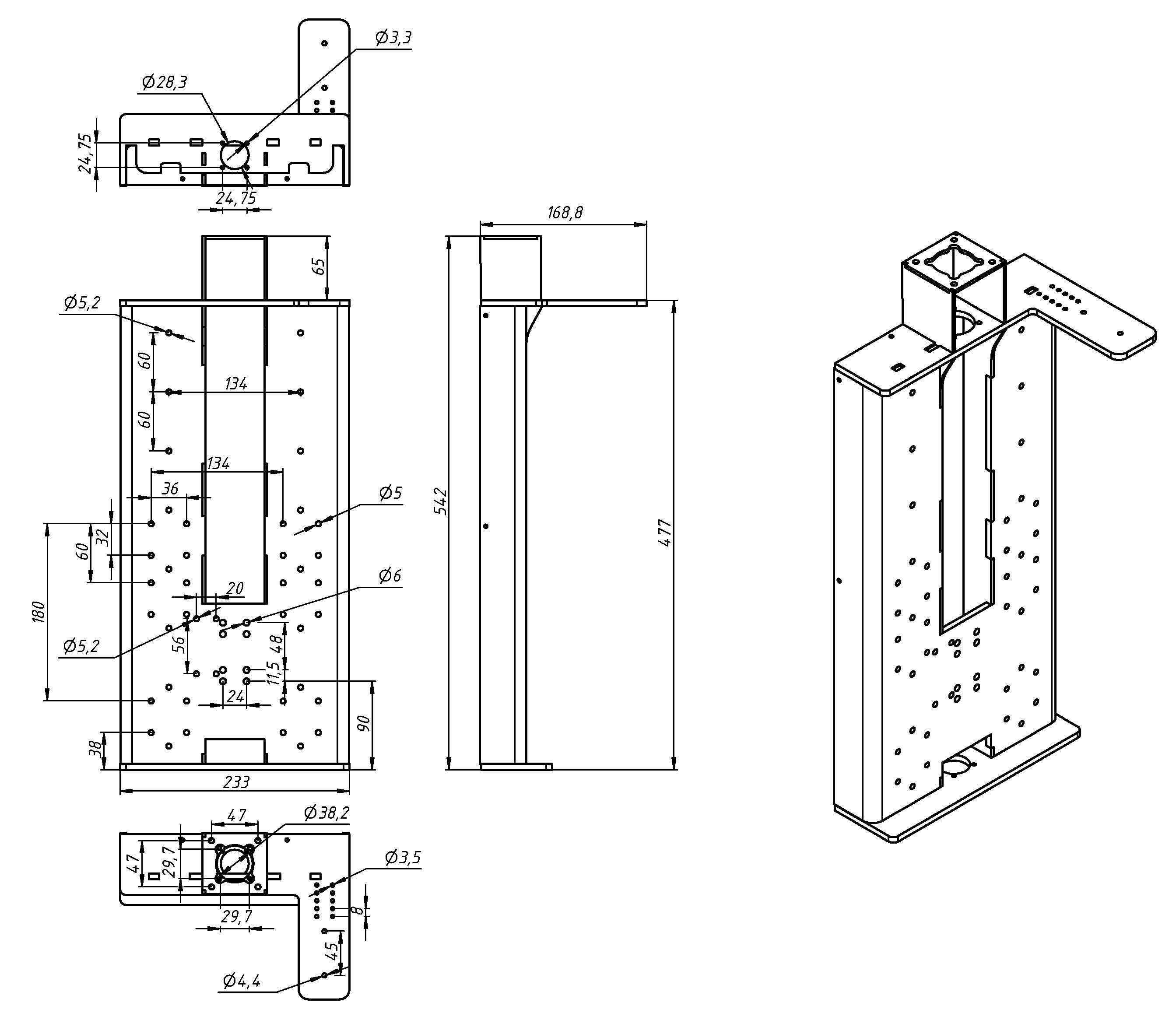 Модуль оси Z с рабочим ходом 220 мм на профильных направляющих.