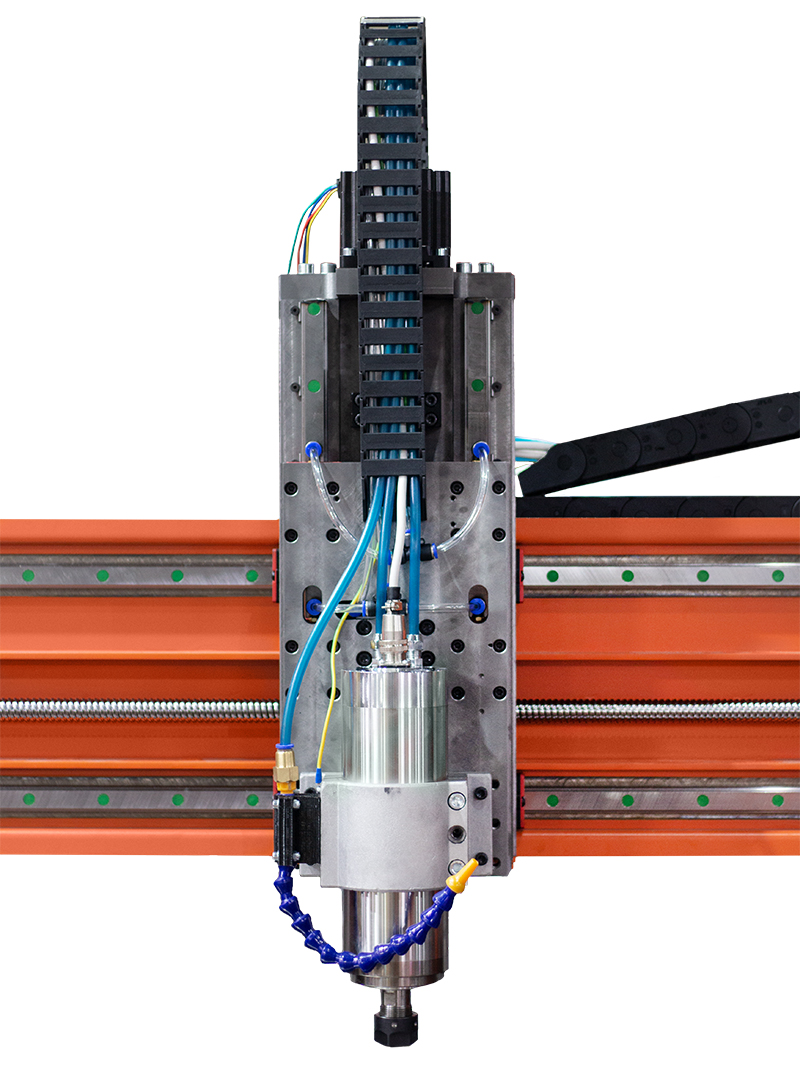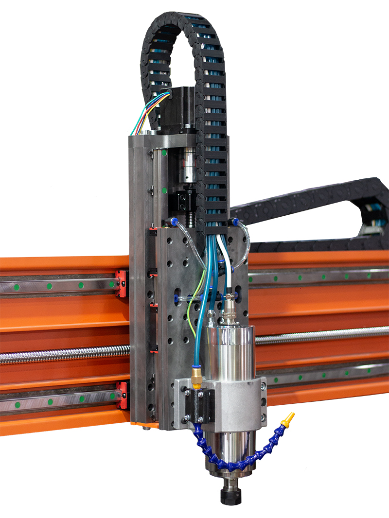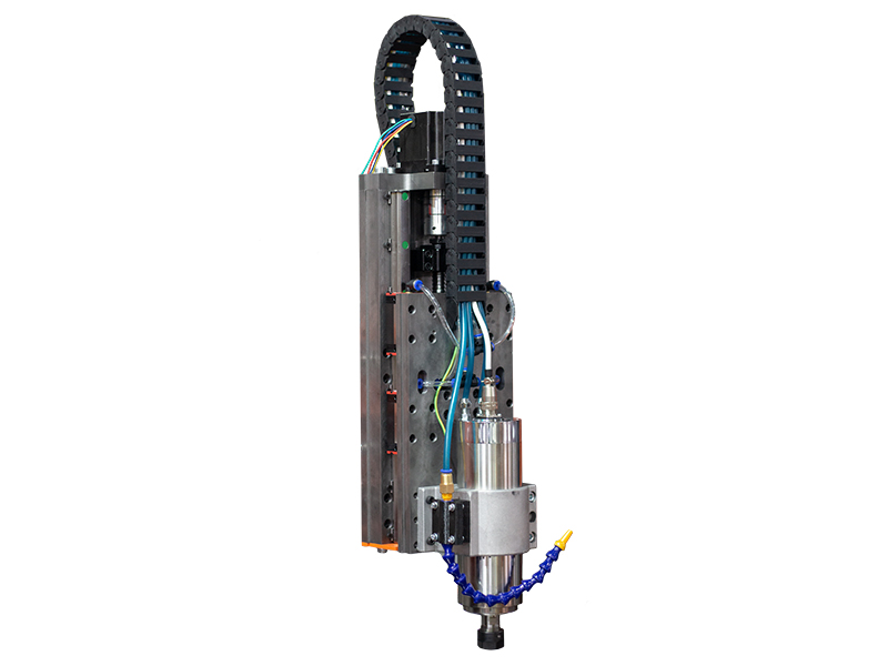 Ось оборудована индуктивным датчиком, для определения домашнего положения, и системой пневмотрубок, позволяющих смазывать каретки и гайку ШВП не разбирая конструкцию.