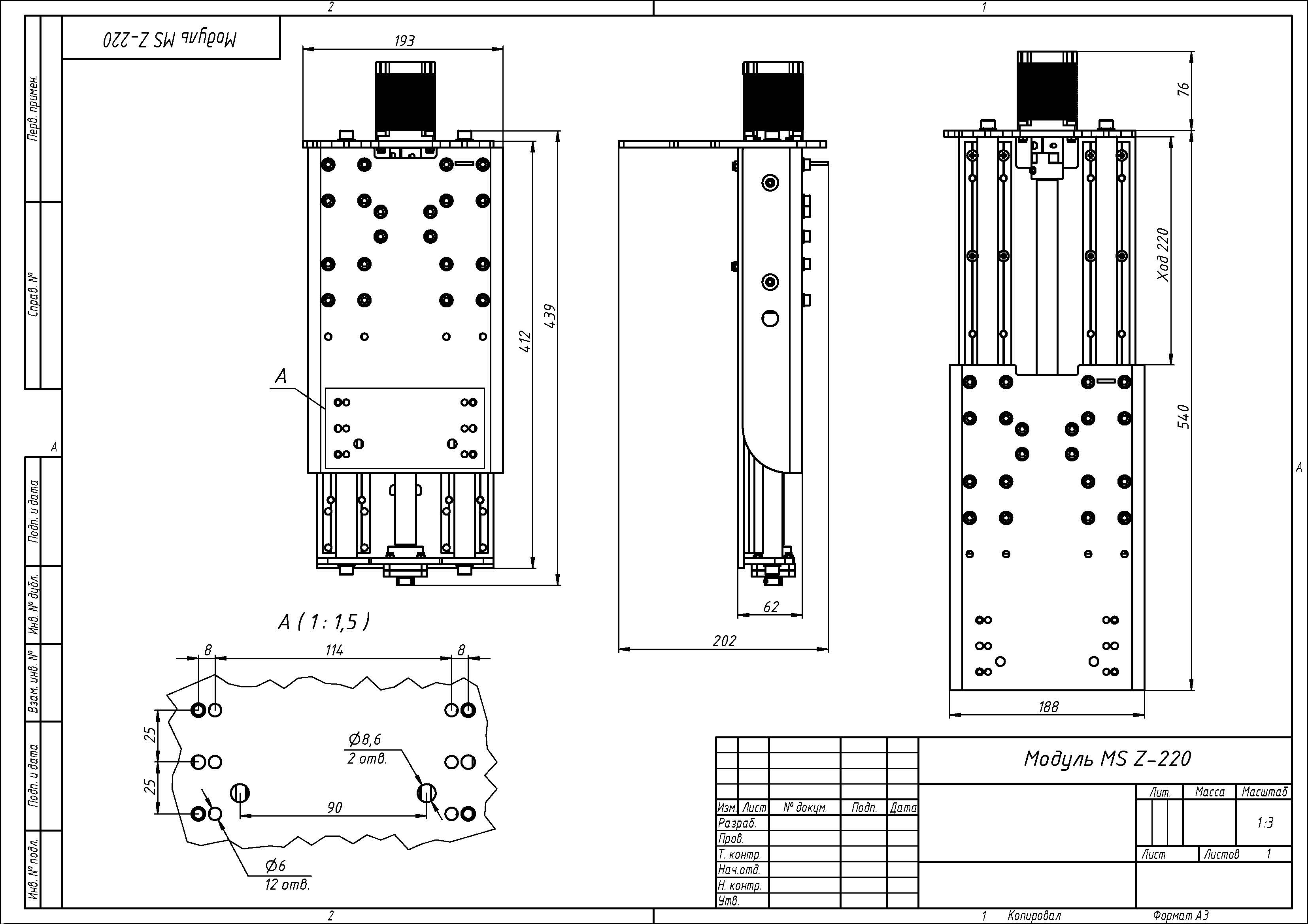 Модуль универсальный MS20-220 предназначен для использования в качестве оси Z в станках с ЧПУ и механизмах, где требуется линейное перемещение различных узлов и рабочих инструментов.