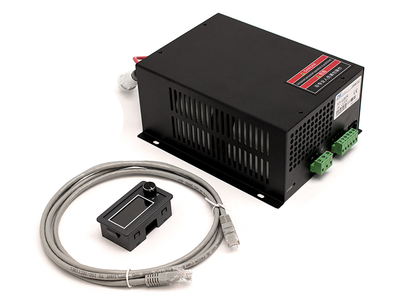 Высоковольтный блок питания для лазерной трубки мощностью до 100 Вт. Блок снабжен выносным LCD дисплеем с возможностью изменения значения выдаваемого тока.