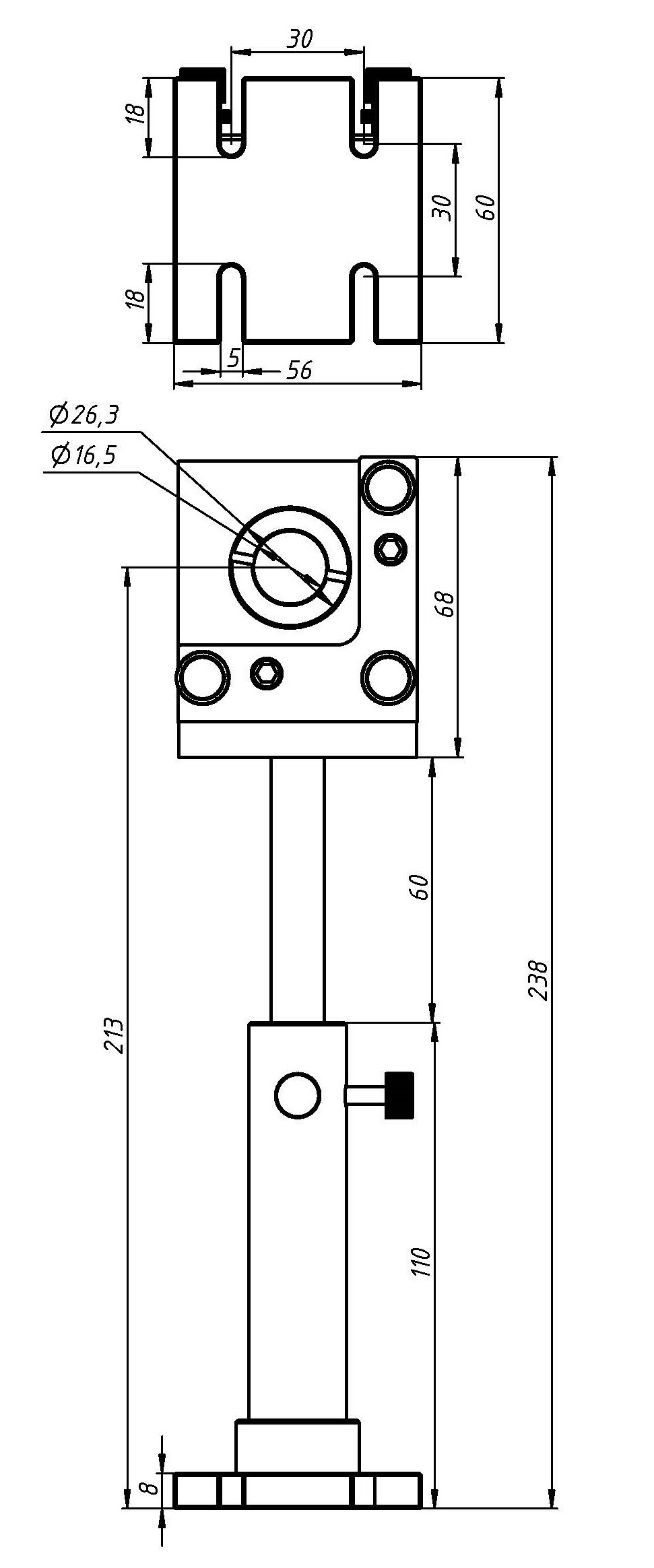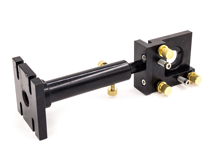 Держатель необходим для монтажа зеркал диаметром 25 мм. Держатель поддерживает регулировку по высоте в пределах от 155 до 190 мм. Большое количество регулировок держателя значительно упрощает процесс юстировки лазера.