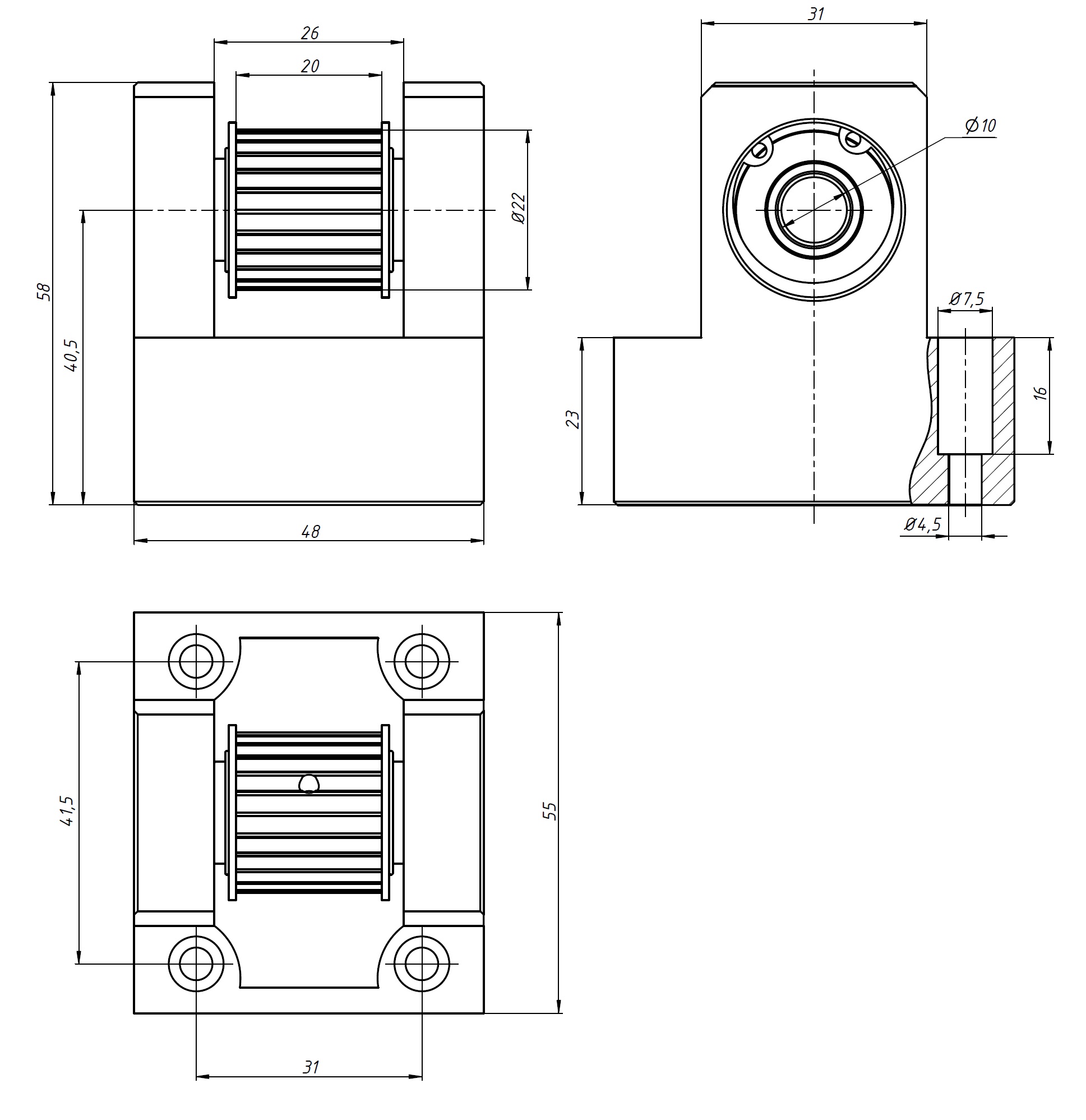 Модуль для ременной передачи по оси X лазерного станка. Включает в себя крепление с подшипниками и шкив 3М для зубчатого ремня 3M-20.