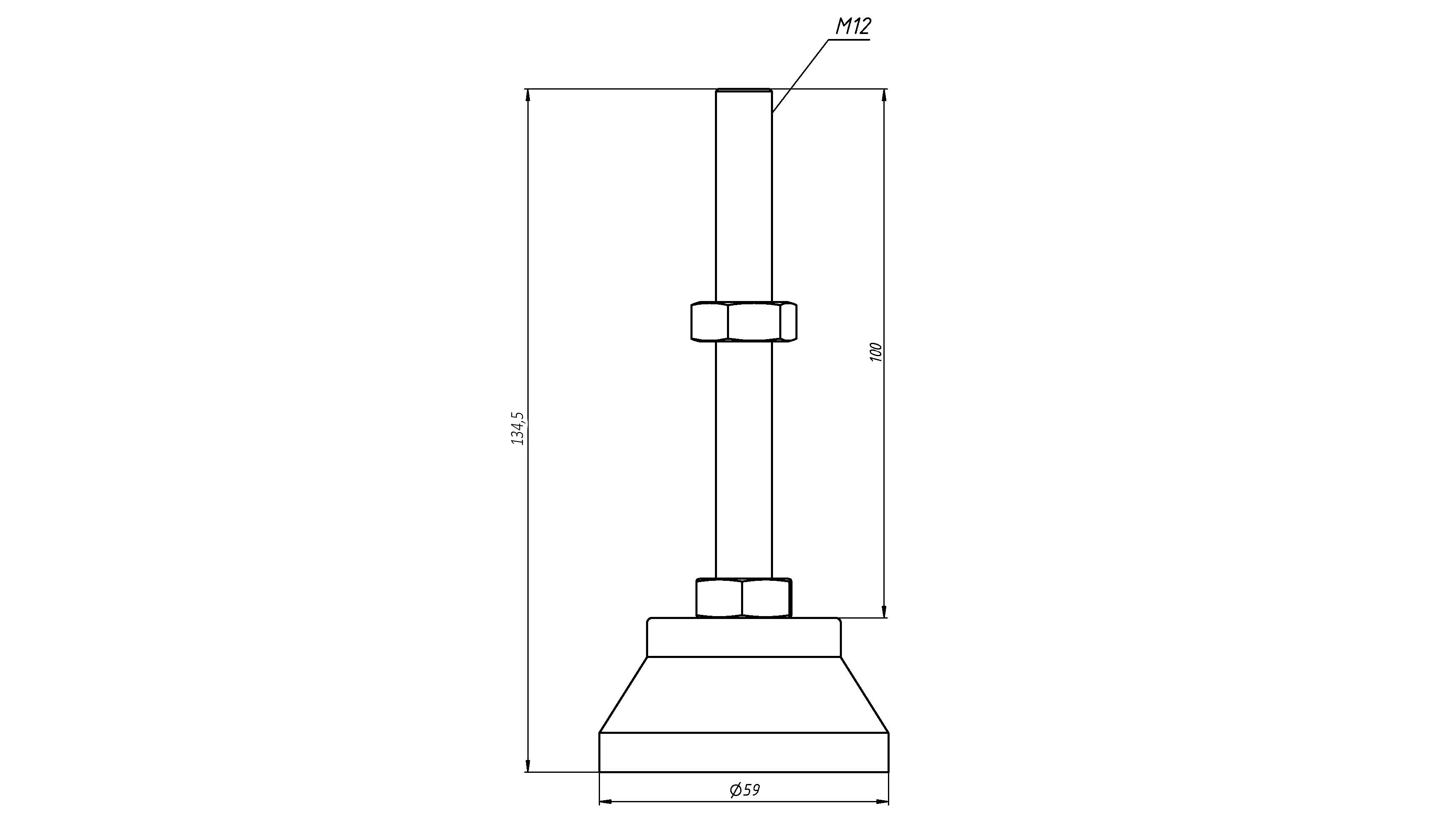 Опора резьбовая с металлическим оцинкованным резьбовым стержнем М12х100 и круглым пластиковым основанием 59 мм. Используется в основном для регулировки конструкции по высоте.