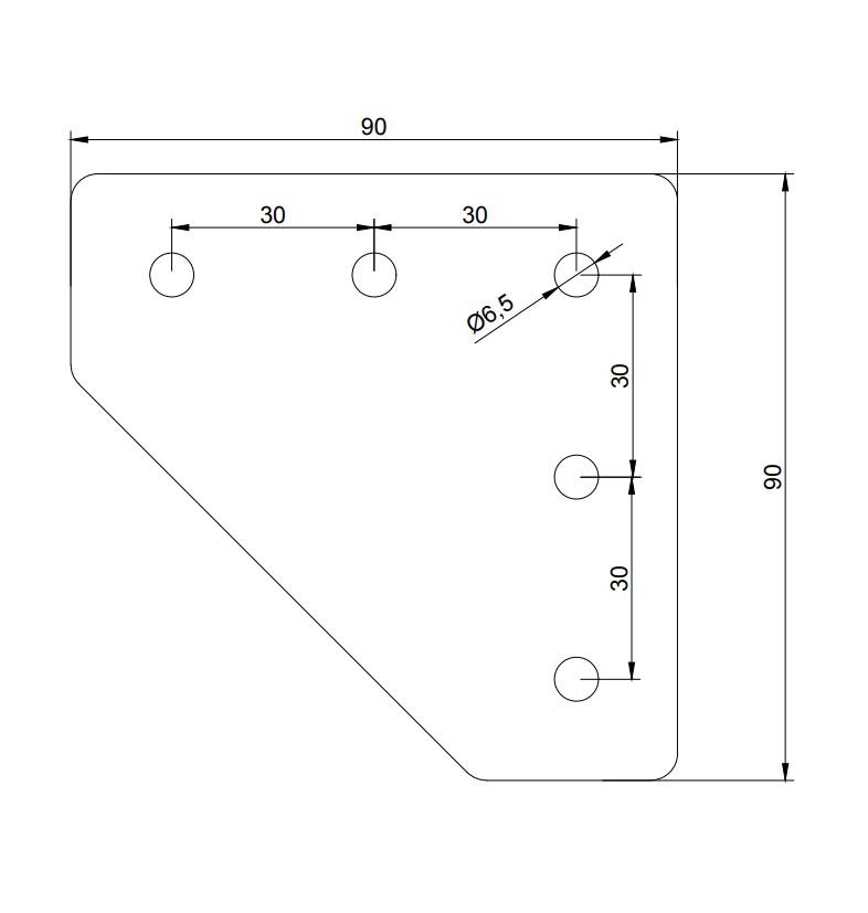Соединительная пластина ПА-2 предназначена для соединения алюминиевых профилей серии AL-3060-8 (сечением 30х60 мм), AL-3030-8 (сечением 30х30 мм) под углом 90 градусов.