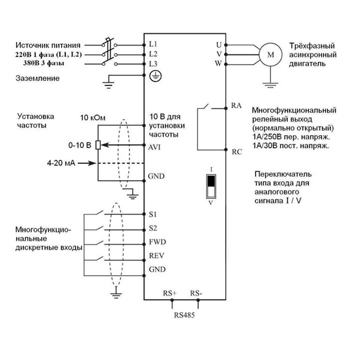 - управление скоростью вращения по управляющей программе, записанной в преобразователе.