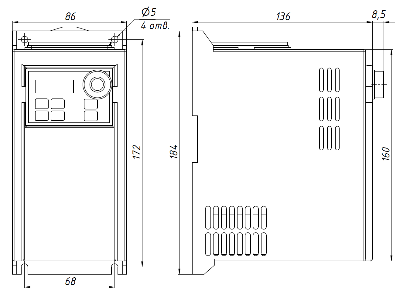- режим установки частоты – цифровая настройка, аналоговая настройка напряжения/тока, настройка нескольких скоростей;