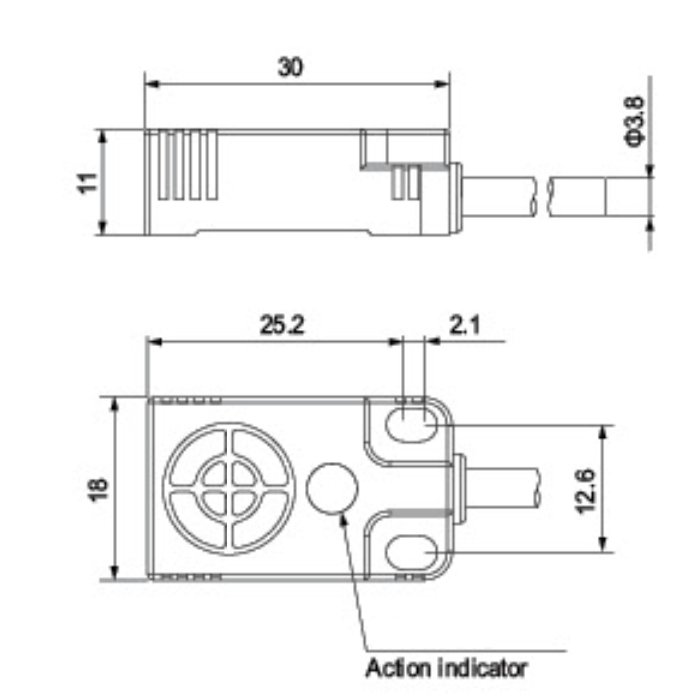 Датчик имеет транзисторный выход NPN полярности и нормально открытое состояние выхода.