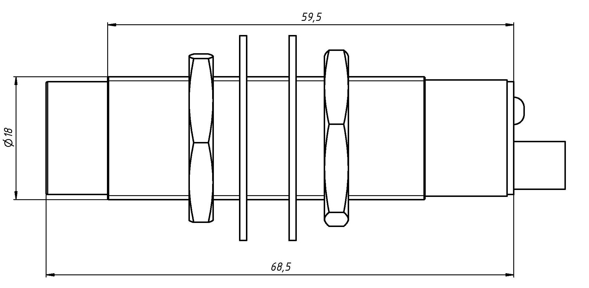 Датчик должен быть установлен чувствительным элементом в сторону зоны измерения. Датчик может быть установлен в монтажное отверстие диаметром 18 мм и глубиной до 37,5 мм. Для этого на корпусе датчика есть две гайки и две шайбы. Датчик герметичен, потому может быть установлен в агрессивной среде. Дистанция срабатывания датчика - 8 мм. На задней торцевой части датчика установлен красный светодиод, который загорается при нахождении в зоне срабатывания металлического объекта.