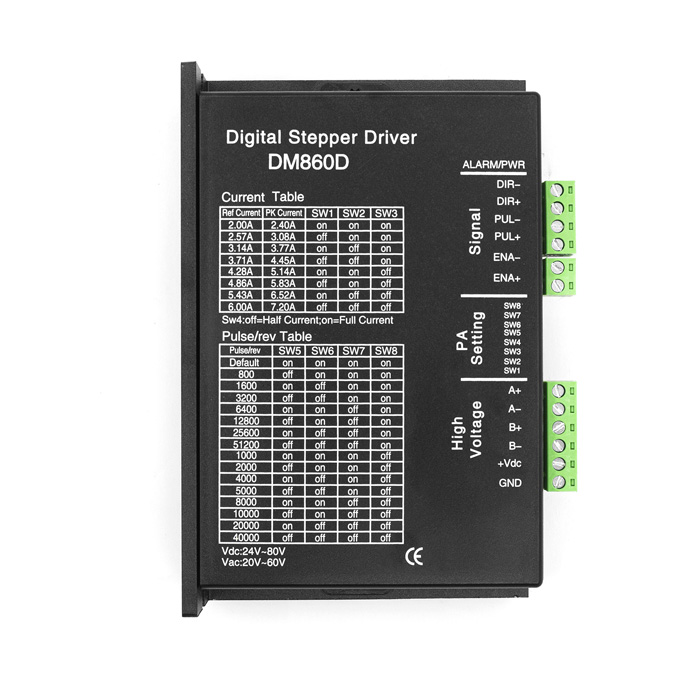 В одноимпульсном режиме (PUL/DIR) по прямоугольному импульсу управляющий драйвер переместит вал двигателя, в зависимости от выбранного микрошага, на одну дискрету в направлении, установленным сигналом DIR, в двухимпульсном (CW/CCW) вал будет вращаться только по часовой стрелке (CW). Выбор режима управления CW/CCW, устанавливается с помощью перемычек . По умолчанию стоит управления PUL/DIR. Требуется: низкий уровень 0 ~ 0,5 В, высокий уровень 4 ~ 5 В. Для надежного отклика ширина импульса должно быть больше 7.5 мкс. |