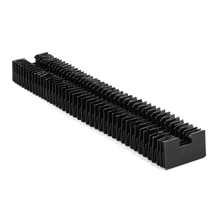 Основными преимуществами гофры перед другими видами защиты направляющих являются высокая скорость перемещения, отличная сжимаемость, а также удобный и простой монтаж на любой станок.