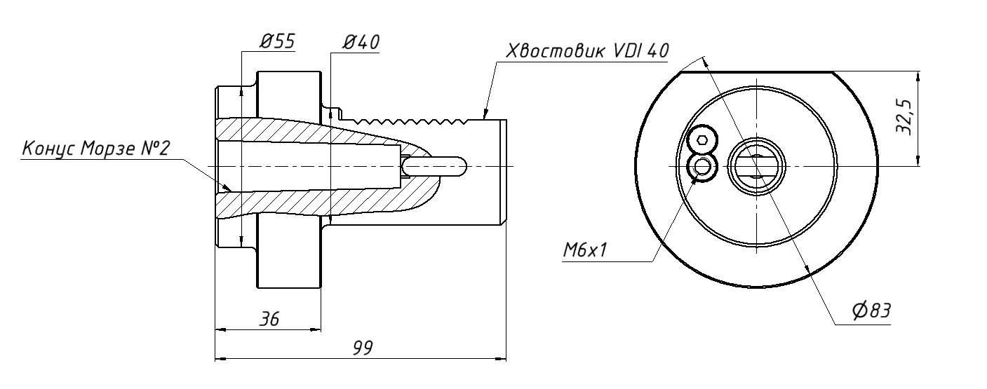 Размер хвостовика держателя - VDI 40. Держатель инструмента стандарта VDI взаимозаменяем и совместим с оборудованием любых производителей. Это значительно ускоряет процесс замены и наладки инструмента.