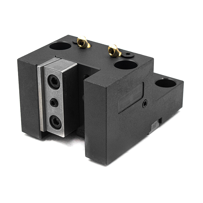 Инструмент зажимается в радиальном направлении к заготовке. Блок фиксируется в револьверной головке BMT станка с помощью четырех винтов.
