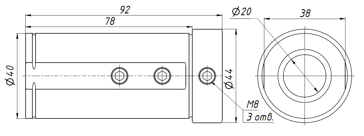 Втулка переходник D40-d20 для инструмента с цилиндрическим хвостовиком. Наружный / внутренний диаметр втулки: 40/20 мм. Тип хвостовика инструмента - Weldon. Фиксация инструмента производится с помощью винтов. Используется для фрез, сверл, расточных резцов.