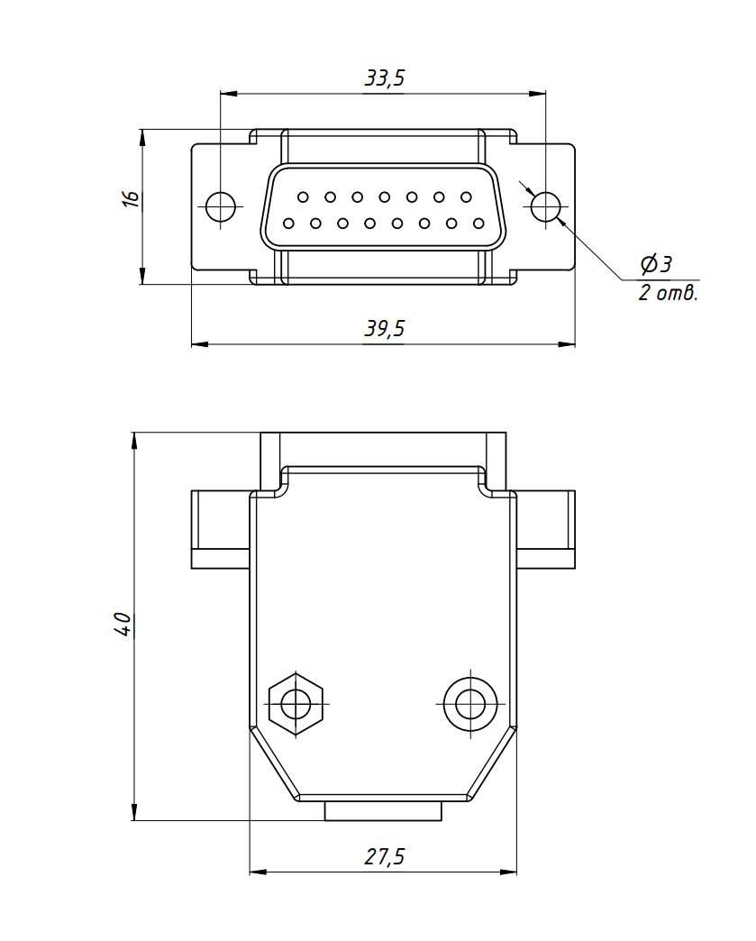 Вилка D-SUB DB-15M - электрическое изделие, двухрядная в металлическом корпусе, для навесного монтажа. Может использоваться в составе кабельного разъема, либо устанавливаться на приборную панель.