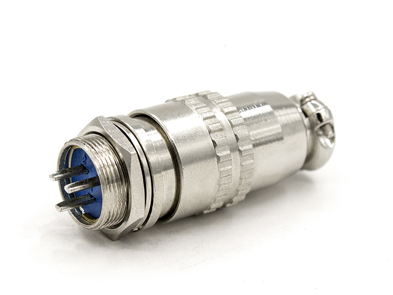 Малогабаритный авиационный разъем ЧПУ XS16-3– коннектор ручного соединения цилиндрический, внутреннего объемного монтажа, соединяет цепи с нагрузкой до 15 А и 300 В.