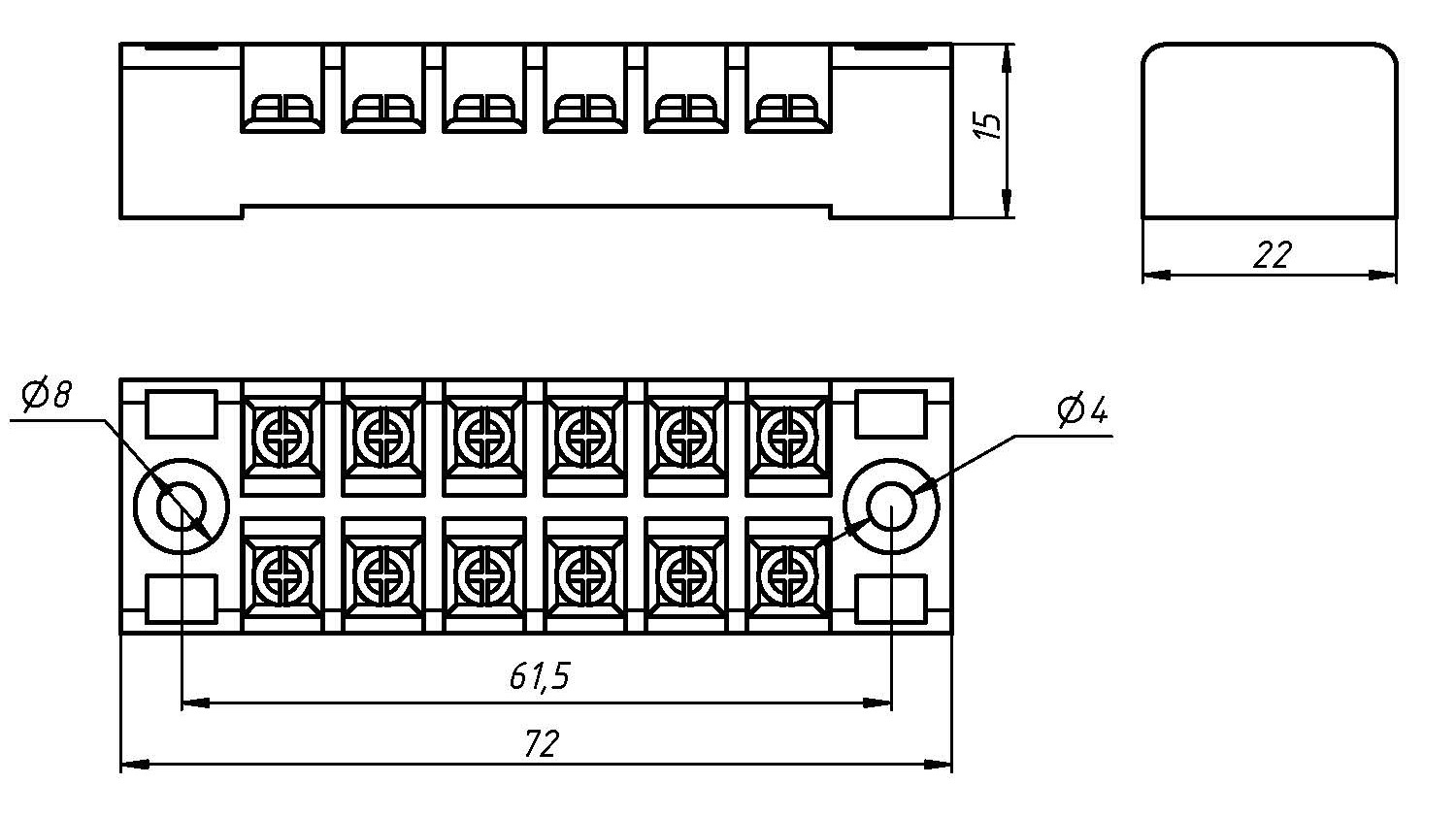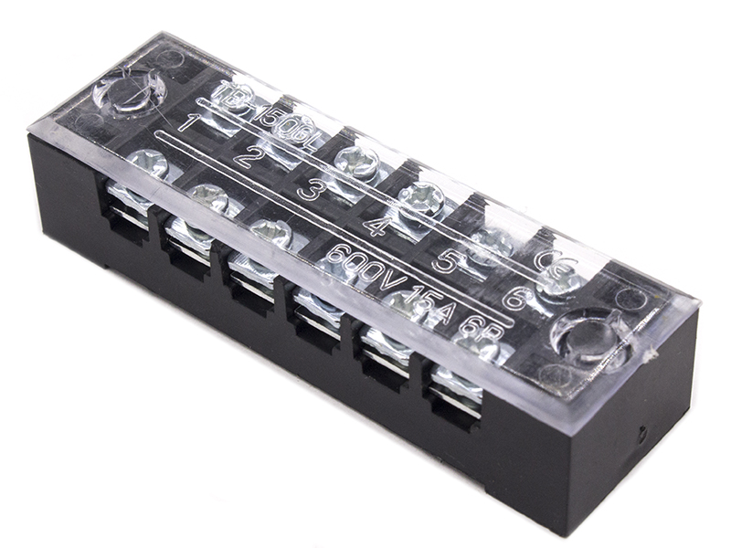 Клеммная колодка TB-1506 предназначена для присоединения и ответвления одножильных и много жильных проводников с максимальным сечением 1,5мм².