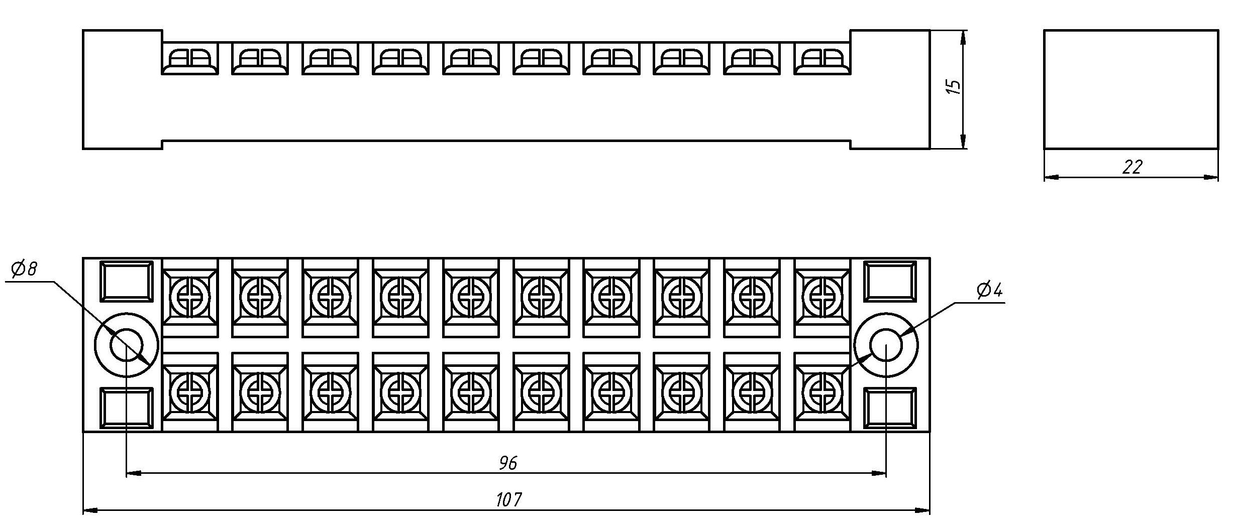 Клеммная колодка TB-1510 предназначена для присоединения и ответвления одножильных и много жильных проводников с максимальным сечением 1,5мм².