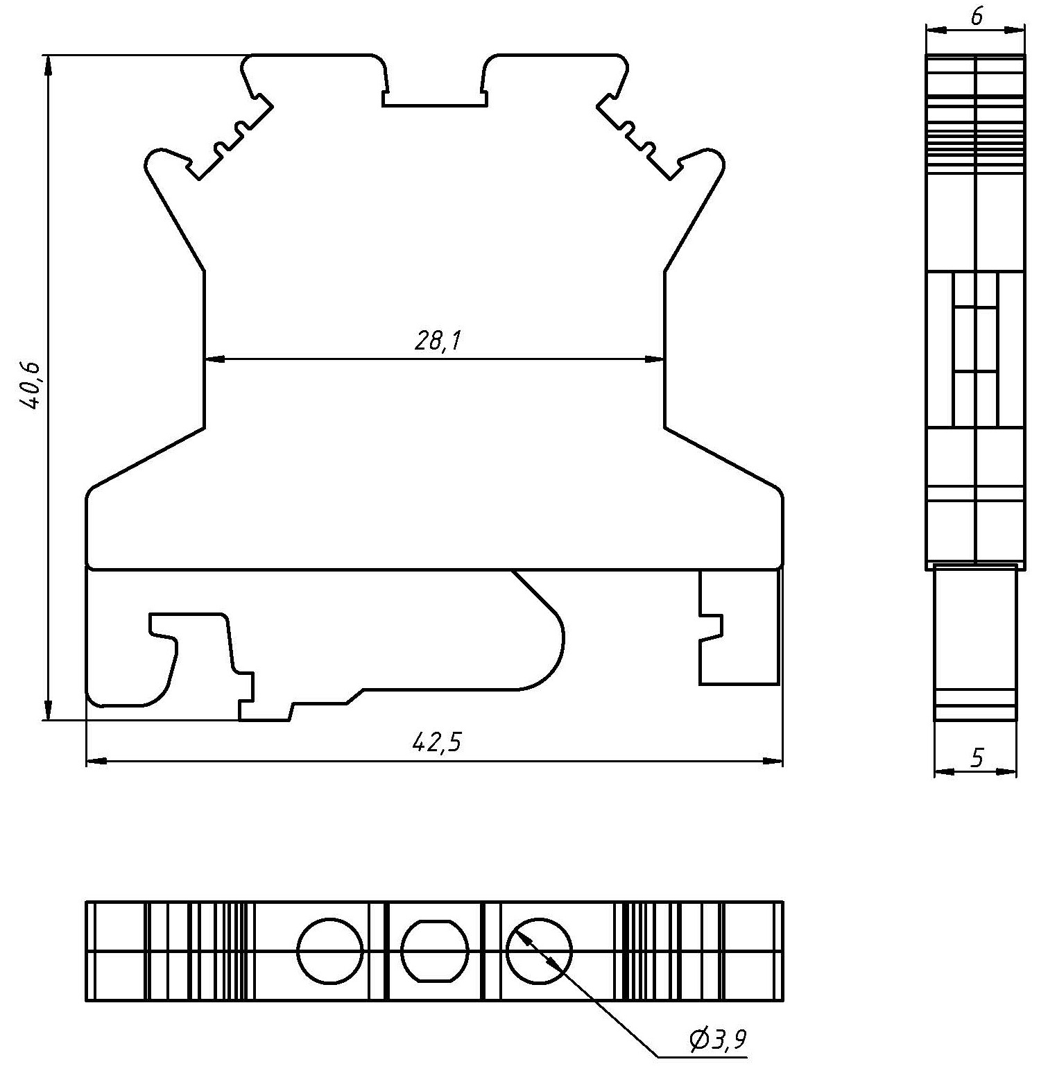 Желто-зеленый клеммник для DIN реек. Используются в основном для объединения заземляющих проводников внутри электрического шкафа.