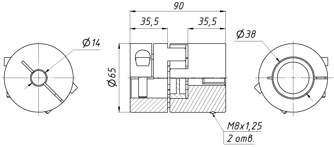 Муфта способна компенсировать угловое смещение сопряженных валов до 1°. Радиальное смещение валов может достигать 0,2 мм.