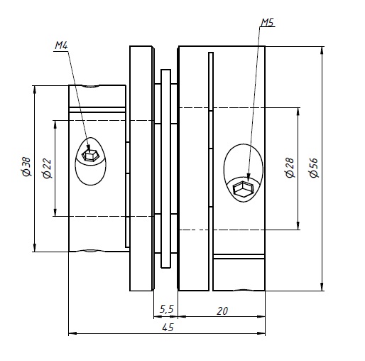 Муфта применяется в узлах, где требуется компенсация несоосности валов и угла между валами. Передает высокий крутящий момент, обеспечивает безлюфтовую передачу, обладает большой скоростью вращения.