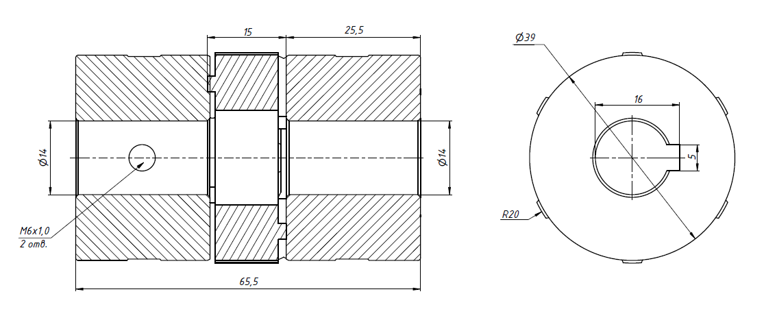 Кулачковая муфта GE состоит из двух полумуфт, между которыми помещена звездочка. Она выполняет роль упругого элемента, компенсирующего возможные перекосы сопряженных валов.