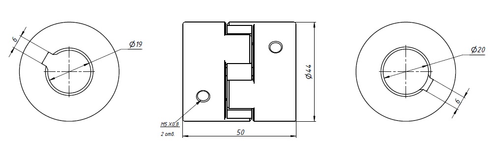 Кулачковая муфта GE состоит из двух полумуфт, между которыми помещена звездочка. Она выполняет роль упругого элемента, компенсирующего возможные перекосы сопряженных валов.