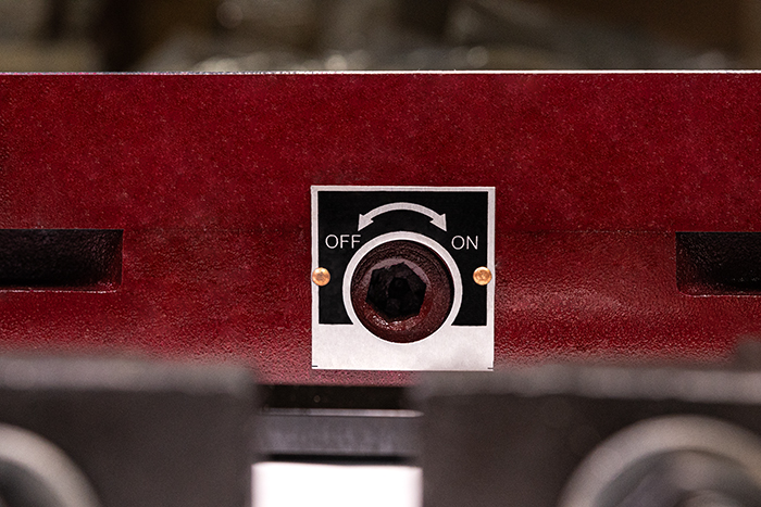 Мощный магнитный стол изготовлен из высококачественной стали и обладает высокой точностью и стабильностью. В нём используются неодимовые магниты NdFeB для безопасного притяжения заготовок. Стол имеет два отверстия под ручку-шестигранник для переключения режимов ВКЛ/ВЫКЛ на двух магнитных зонах. Он также обладает хорошей водонепроницаемостью и совместим с использованием СОЖ.