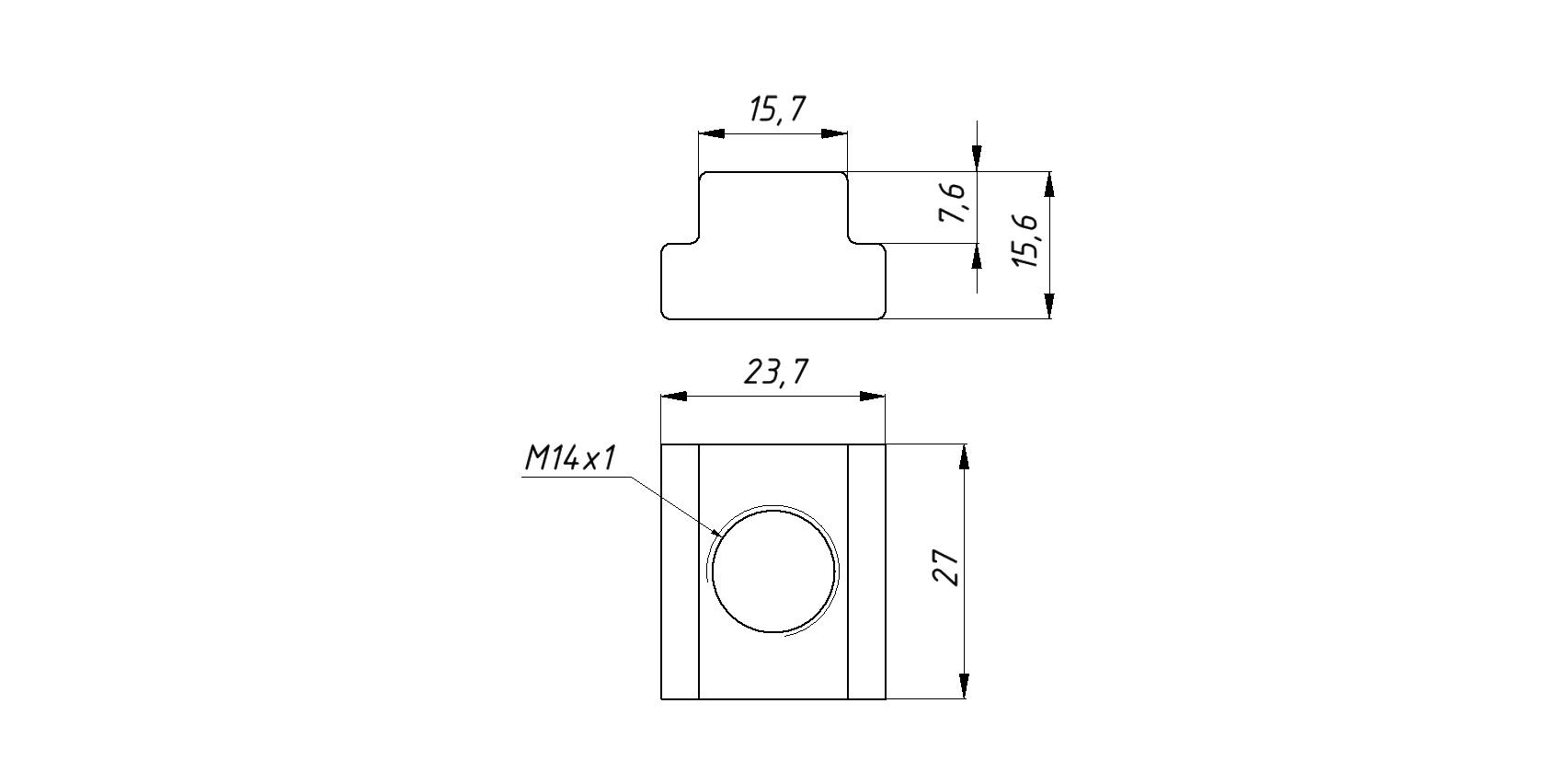 Сухарь для Т-образных станочных пазов. Шпилька М14. Шаг резьбы 1 мм.
