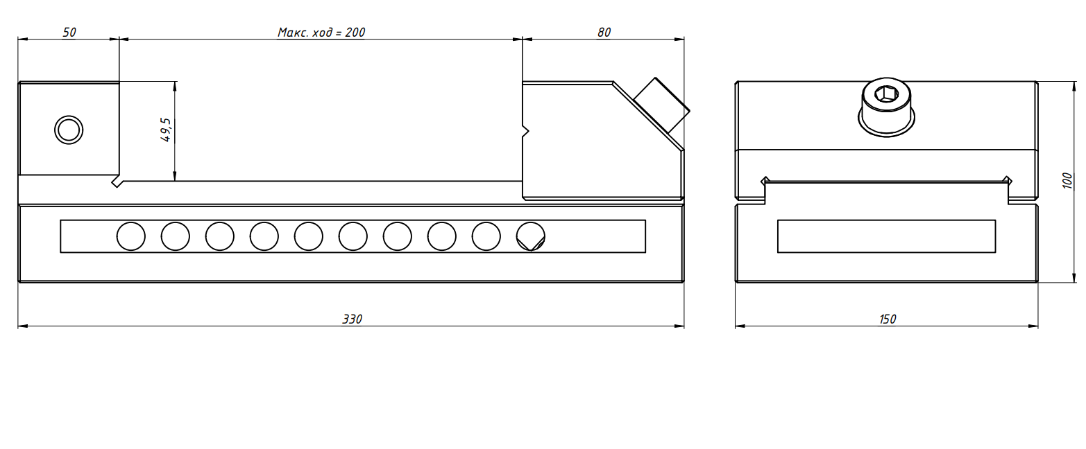 Станочные высокоточные тиски QKG150 изготовлены из легированной стали высокого качества. Используются для крепления и дальнейшей обработки заготовок во фрезерных, шлифовальных и прецизионных расточных станках. Твердость рабочих поверхностей достигает 58-62 HRC, отклонение от параллельности и перпендикулярности не более 5 мкм на 100 мм. Сжимание губок винтом с помощью шестигранника позволяет обойтись без ручки, снизить габариты - такие тиски проще поместить под портал, полностью используя его ход. Подвижная губка имеет горизонтальную и вертикальную проточку для фиксации цилиндрических заготовок.