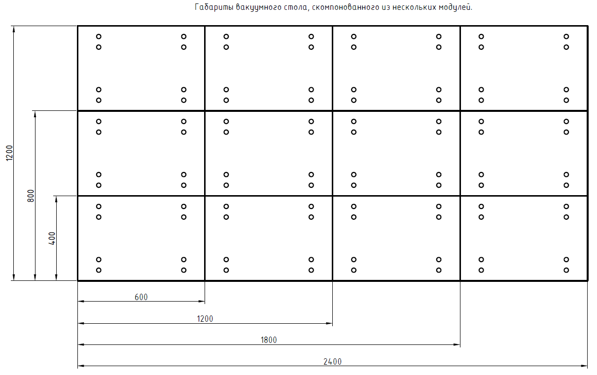 С помощью таких секций можно собирать вакуумные столы больших размеров, например: 1800х1200, 3000х1600 мм и т.д. При этом вакуумная камера будет создаваться по всей площади стола.