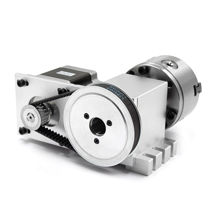 Поворотная ось 5M-3-100B используется для поворота обрабатываемых деталей на заданный угол. В зависимости от задачи и длины заготовки может использоваться в паре с задней бабкой, а так же и без нее.