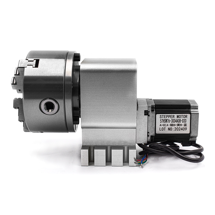 Поворотная ось CL100-10-125A используется для поворота обрабатываемых деталей на заданный угол. В зависимости от задачи и длины заготовки может использоваться в паре с задней бабкой, а также и без нее.