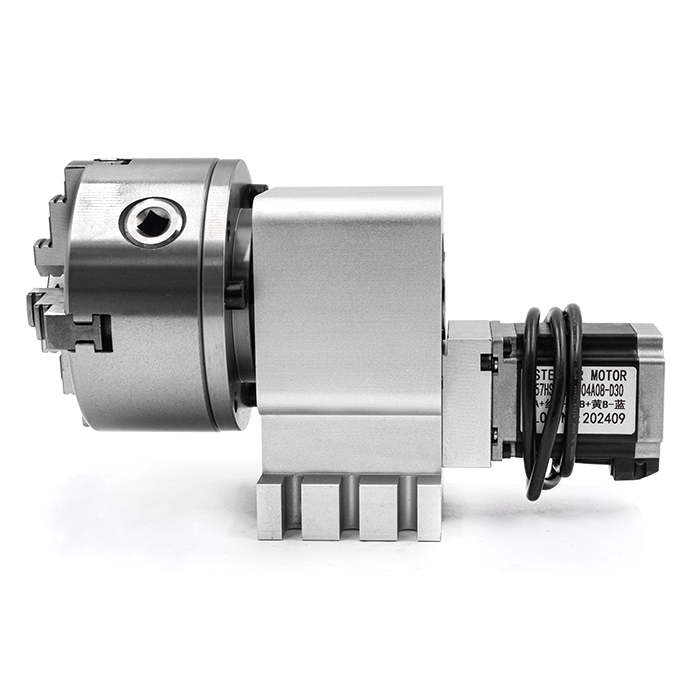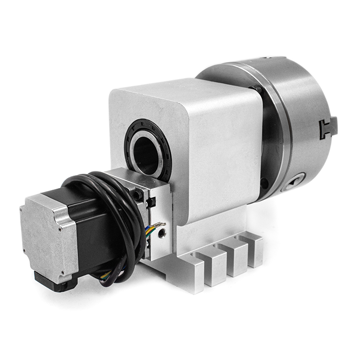 Поворотная ось CL100-10-125B используется для поворота обрабатываемых деталей на заданный угол. В зависимости от задачи и длины заготовки может использоваться в паре с задней бабкой, а также и без нее.