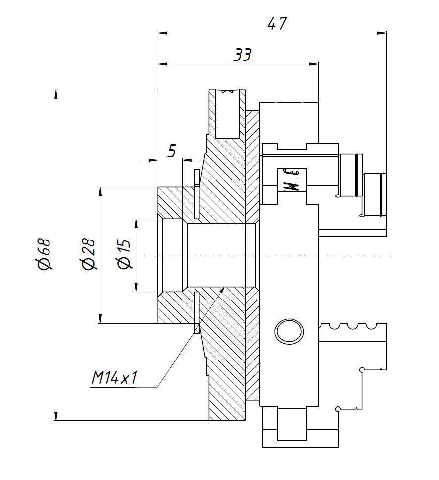 Стальной трехкулачковый самоцентрирующийся токарный патрон для обработки небольших деталей из мягких материалов.