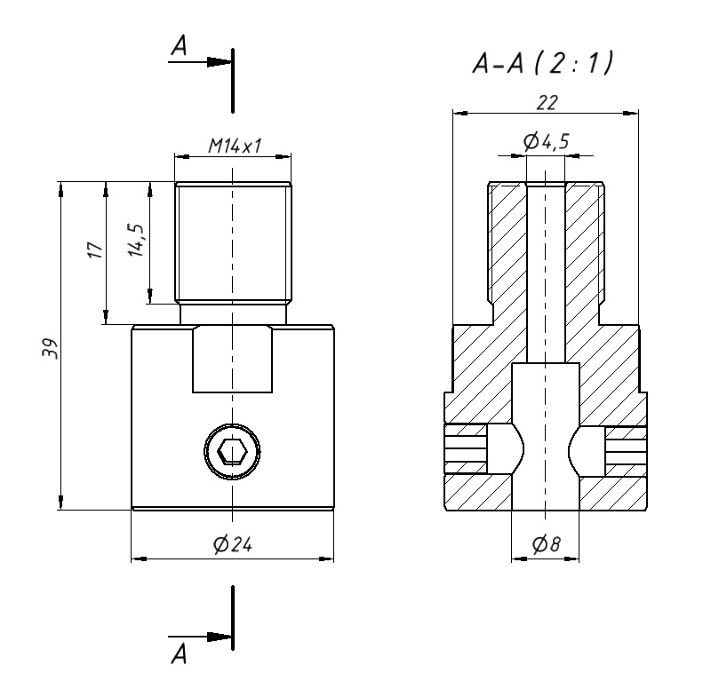 Переходник для крепления токарного патрона на валу диаметром 8 мм. Возможна установка прямо на вал шагового двигателя с помощью поджимных винтов.
