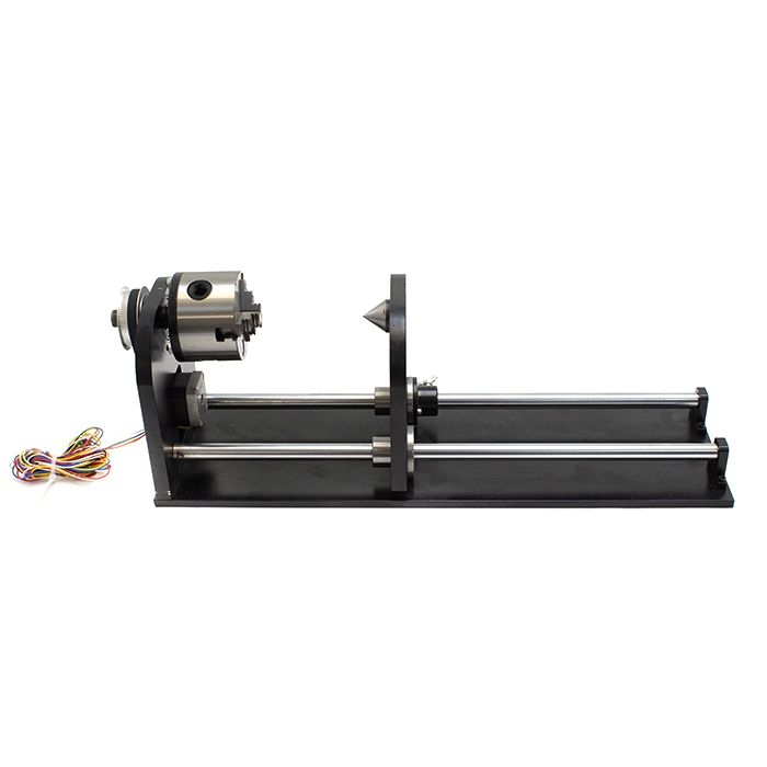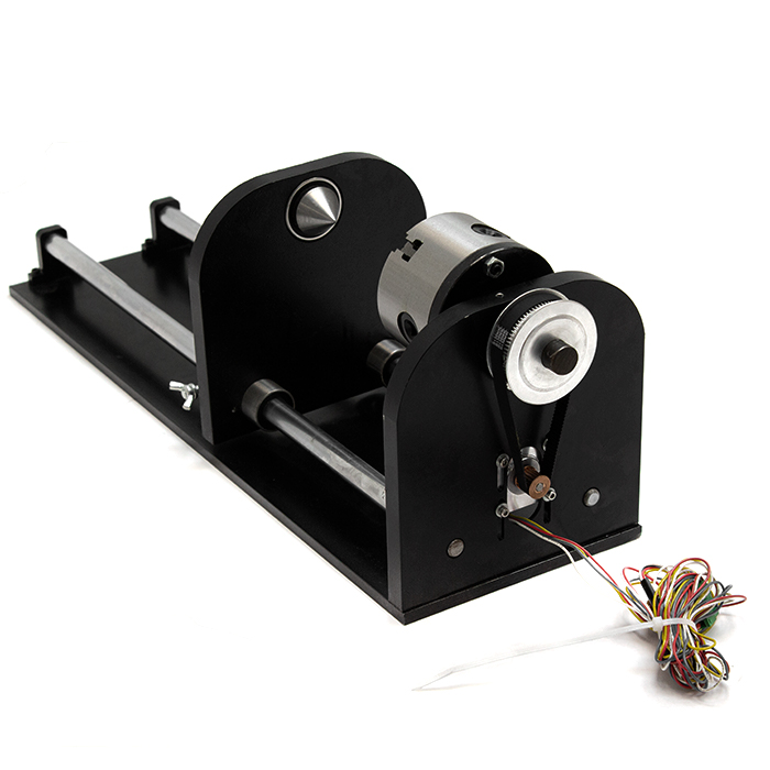Поворотная ось с 2-х фазным шаговым двигателем nema 17 позволяет выполнять обработку и лазерную гравировку цилиндрических деталей диаметром до 80 мм.