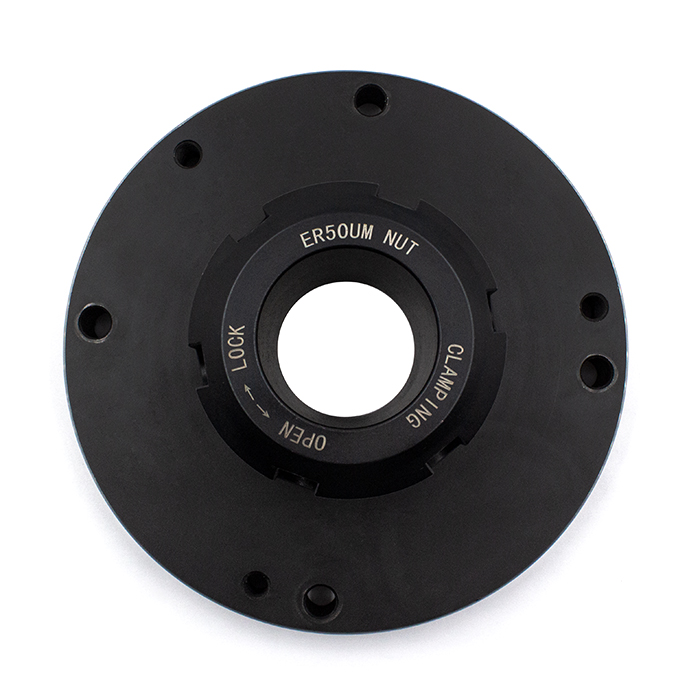 Патрон цанговый 160 мм ER50 предназначен для использования на токарных станках. В патроне предусмотрено сквозное отверстие, которое прозволяет устанавливать длинные заготовки сквозь шпиндельный узел токарного станка. Крепежные размеры патрона соответствуют стандартным размерам крепления 160мм 4х-кулачкового токарного патрона (Патрон токарный K12-160 с 4 кулачками) для крепления на фланец шпинделя, что позволяет легко установить цанговый патрон вместо кулачкового. В патроне используются стандартные цанги ER50, которые позволяют зажимать заготовки диаметром от 6мм до 36мм. Цанговый зажим можно использовать и для установки фрез в шпиндель токарного патрона.