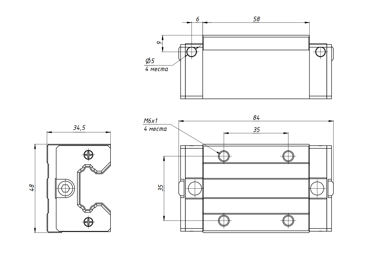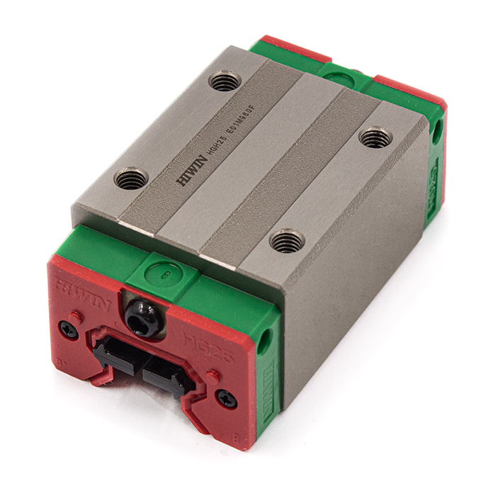 Взаимозаменяемый модуль опорный (каретка) HIWIN серии HG состоит из корпуса, в котором расположены 2 ряда металлических шариков, их перемещение происходит в замкнутом контуре. Для смазки предусмотрены отверстия, в которые вворачивается пресс-масленка.