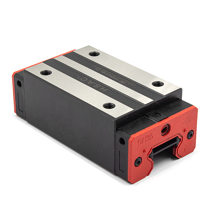Каретки (модули линейного перемещения) для профильных рельсов GR серии GHR. Производитель - HSAC (Тайвань). Состоят из корпуса, в котором расположены 2 ряда металлических шариков, их перемещение происходит в замкнутом контуре. Для смазки предусмотрены отверстия, в которые вворачивается пресс-масленка.