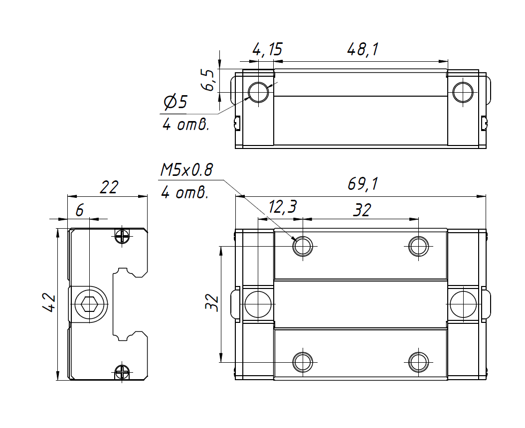 Взаимозаменяемый модуль опорный (каретка) HIWIN серии QE состоит из корпуса, в котором расположены 2 ряда металлических шариков, их перемещение происходит в замкнутом контуре. Серия QE с технологией SynchMotionTM обладает всеми преимуществами серии EG, а также предлагает плавное и бесшумное перемещение, превосходную смазку и длительный срок службы. Для смазки предусмотрены отверстия, в которые вворачивается пресс-масленка. Серия QE взаимозаменяема с серией EG.