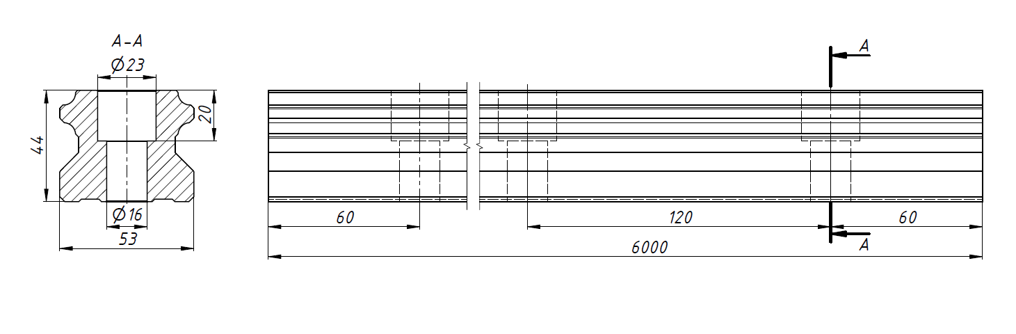 - Крепление рельсовой направляющей происходит через каждые 60 мм (у направляющих GR15, GR20, GR25), каждые 80 мм (у направляющих GR30 и GR35), каждые 105 мм у направляющей GR45 и каждые 120 мм у направляющей GR55. Что обеспечивает надежное крепление профильного рельса и позволяет избежать провисания.
