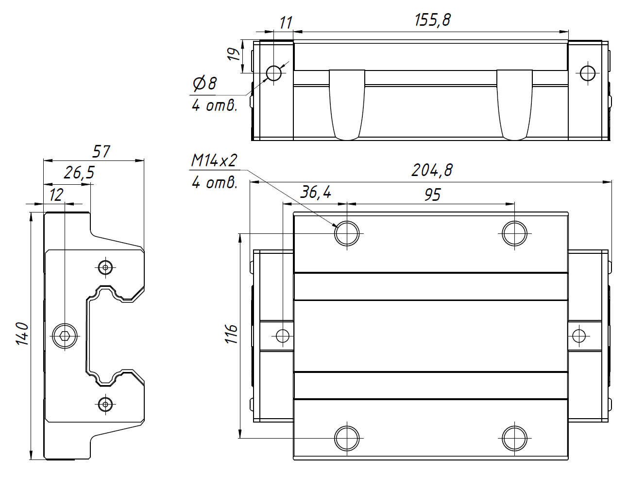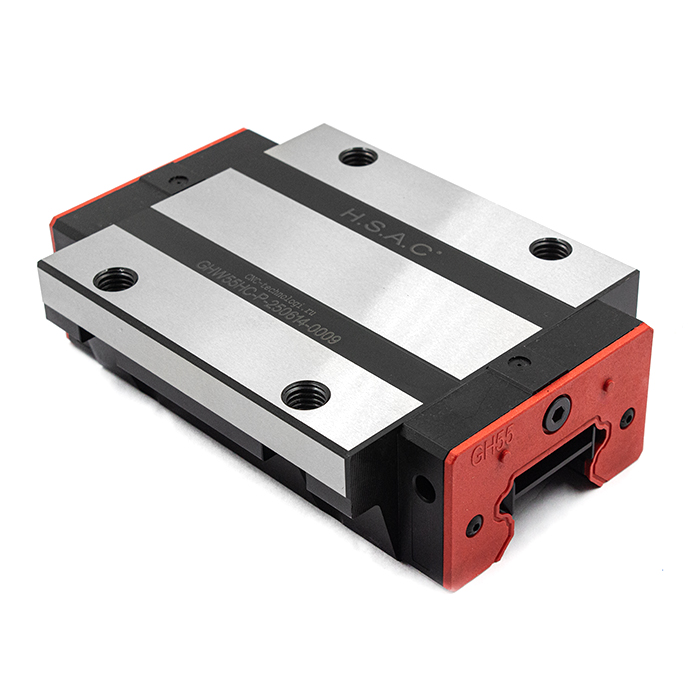 Каретки (модули линейного перемещения) для профильных рельсов GHR серии GH. Производитель - HSAC (Тайвань). Состоят из корпуса, в котором расположены 2 ряда металлических шариков, их перемещение происходит в замкнутом контуре. Для смазки предусмотрены отверстия, в которые вворачивается пресс-масленка.