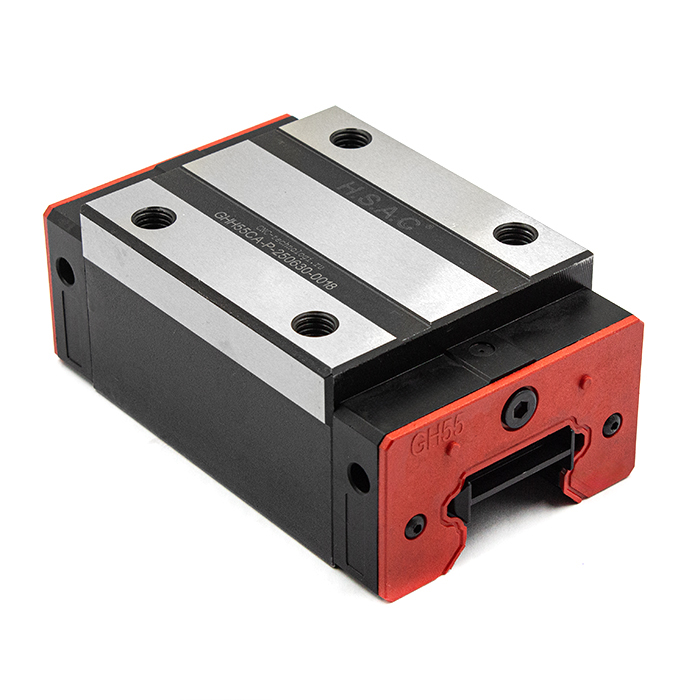 Каретки (модули линейного перемещения) для профильных рельсов GHR серии GH. Производитель - HSAC (Тайвань). Состоят из корпуса, в котором расположены 2 ряда металлических шариков, их перемещение происходит в замкнутом контуре. Для смазки предусмотрены отверстия, в которые вворачивается пресс-масленка.