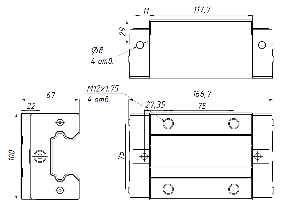 Каретка (линейный подшипник) без фланца. Применяется с профильным рельсом GHR55.